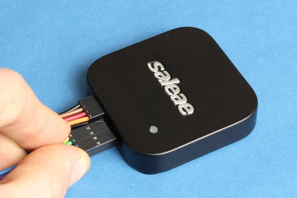 Connect one or more cable harnesses to the Saleae Logic Analyzer. Note that each cable harness has an arrow on the top of the connector. This arrow should point up (same side as the Saleae logo) and to the left (the side with the ‘S’ in Saleae).