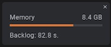 We process incoming captured data in real-time while looking for the trigger. During this process, performance bottlenecks could occur, which are most commonly caused by using high sampling rates, enabling a large number of channels, and/or running on a relatively low performance PC. The glitch filter feature can also significantly slow down processing performance. This may cause a backlog of unprocessed data (i.e. “backlogged data”) to start building up. If this occurs, you will notice a backlog amount (in seconds) appear in the Memory buffer usage window during a capture like shown in the image below.